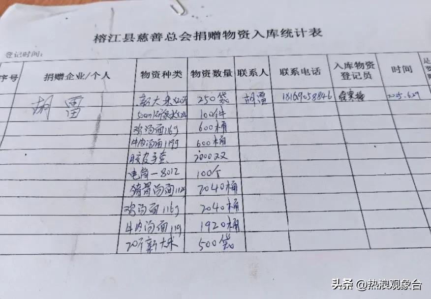 胡雷因小兒麻痹癥導(dǎo)致下肢癱瘓,日常依靠拾荒和擺攤維生,卻堅(jiān)持捐款助人多年。這次遠(yuǎn)赴千里之外的榕江,他隨身攜帶的物資清單令人動(dòng)容:1萬(wàn)斤大米、500箱方便面、500件礦泉水、100個(gè)手電筒、2000多雙手套,總價(jià)值約5.5萬(wàn)元。
