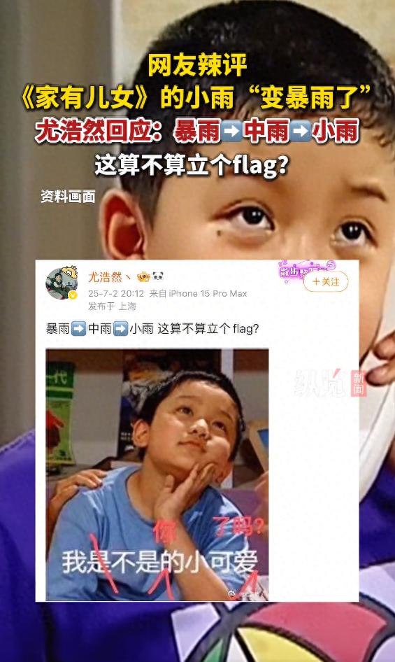 7月2日,尤浩然發文配上“小雨”表情包回應:暴雨→中雨→小雨,這算不算立個flag?(縱覽新聞)