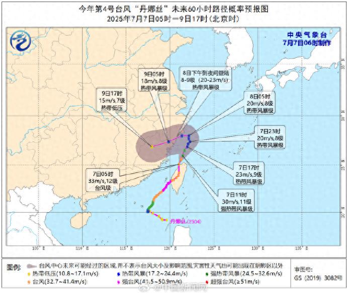 臺(tái)風(fēng)“丹娜絲”中心對臺(tái)灣省新北市至屏東縣、南投縣、宜蘭縣、花蓮縣、臺(tái)東縣及澎湖縣等地構(gòu)成威脅。截至6日晚間,臺(tái)灣多地已出現(xiàn)暴雨、游客滯留及停電等情況。
