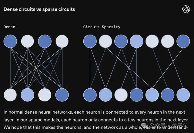 簡(jiǎn)單來說,在這項(xiàng)研究中,OpenAI研究員們的核心思路是:訓(xùn)練神經(jīng)元連接少、但神經(jīng)元數(shù)量多的稀疏模型,讓神經(jīng)網(wǎng)絡(luò)變得簡(jiǎn)單,也更容易理解。
