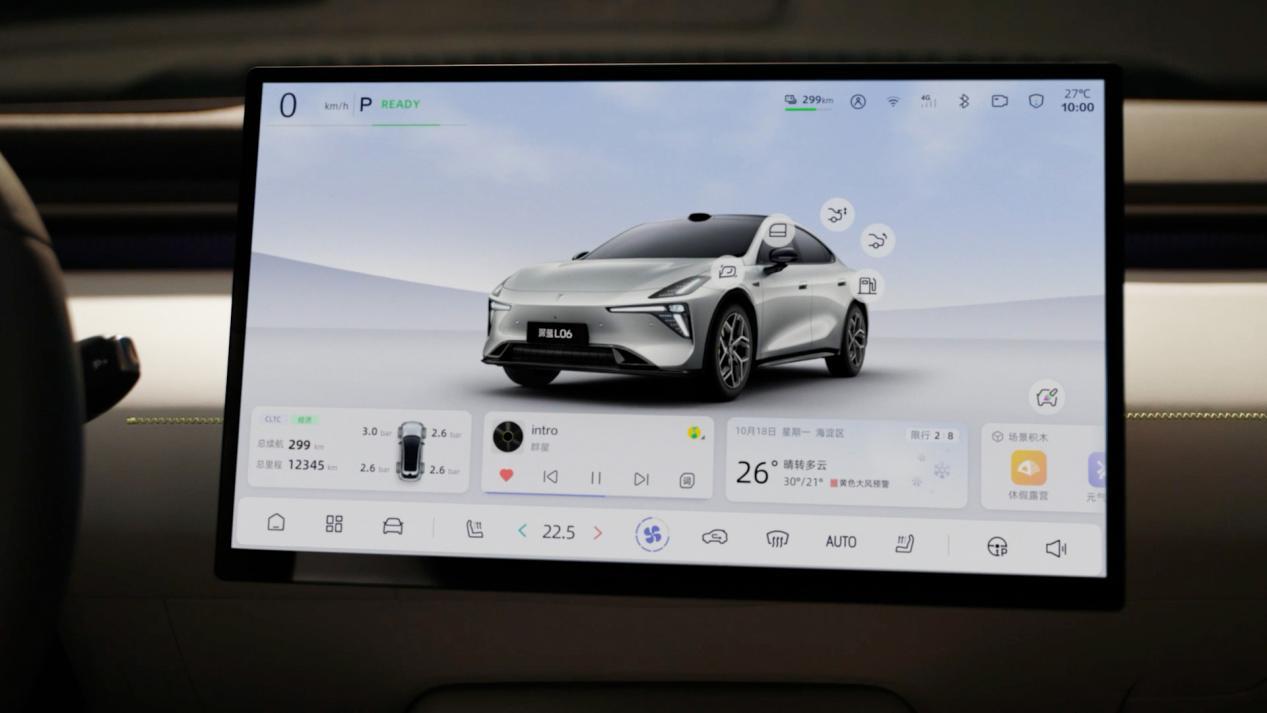 內飾采用了經典的 T 字形布局,整體較為簡約,中控臺并未配備傳統的儀表盤,取而代之的50英寸AR-HUD抬頭顯示系統,具有全息式增強現實功能。